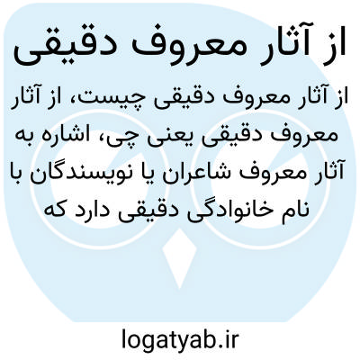 اشاره به آثار معروف شاعران یا نویسندگان با نام خانوادگی دقیقی دارد که معمولاً در حوزه شعر و ادب فارسی شناخته شدهاند. البته دقیقی یک نام نسبتا رایج است و ممکن است به چند شخص مختلف اشاره داشته باشد.