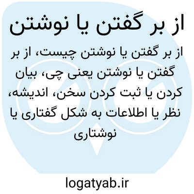 بیان کردن یا ثبت کردن سخن، اندیشه، نظر یا اطلاعات به شکل گفتاری یا نوشتاری که وسیله انتقال فکر و ارتباط بین انسانهاست.