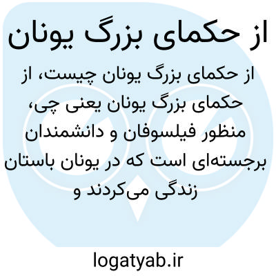 منظور فیلسوفان و دانشمندان برجستهای است که در یونان باستان زندگی میکردند و پایهگذار فلسفه، منطق، علم و هنر مدرن بودند؛ مانند افلاطون، ارسطو و سقراط که تاثیر فراوانی روی فرهنگ و اندیشه بشری گذاشتند.