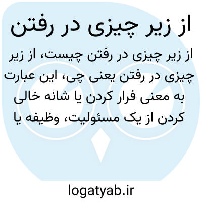 این عبارت به معنی فرار کردن یا شانه خالی کردن از یک مسئولیت، وظیفه یا مشکل است. یعنی فردی که از زیر چیزی در میرود، سعی میکند خود را از انجام کاری که بر عهدهاش است، معاف کند.