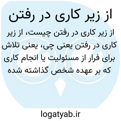 یعنی تلاش برای فرار از مسئولیت یا انجام کاری که بر عهده شخص گذاشته شده است. مشابه عبارت «از زیر چیزی در رفتن» است و بار منفی دارد.
