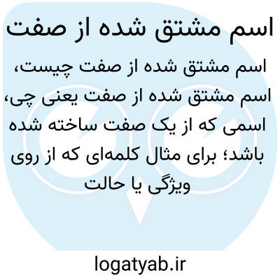اسمی که از یک صفت ساخته شده باشد؛ برای مثال کلمه‌ای که از روی ویژگی یا حالت افراد یا اشیاء ساخته شود و به صورت اسم به کار رود.