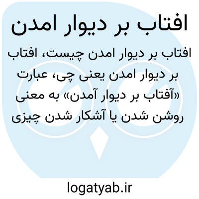 عبارت «آفتاب بر دیوار آمدن» به معنی روشن شدن یا آشکار شدن چیزی است، مشابه طلوع آفتاب که نور را به دیوار می‌تاباند و همه چیز را روشن می‌کند. این تعبیر ممکن است به ظهور حقیقت، آگاهی یا روشن شدن وضعیتی اشاره داشته باشد.