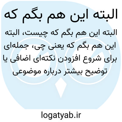 جملهای برای شروع افزودن نکتهای اضافی یا توضیح بیشتر درباره موضوعی که قبلا مطرح شده است. معمولاً در مکالمات و نوشتههای غیررسمی کاربرد دارد.
