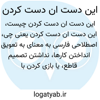 اصطلاحی فارسی به معنای به تعویق انداختن کارها، نداشتن تصمیم قاطع، یا بازی کردن با چیزی بین دو طرف است. معمولاً وقتی کسی نمیداند چه کاری انجام دهد یا از تعهد فرار میکند، گفته میشود «این دست ان دست میکند».
