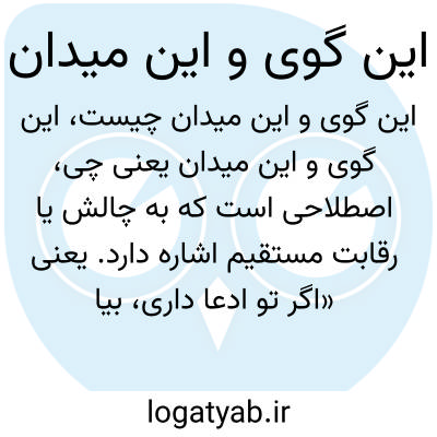 اصطلاحی است که به چالش یا رقابت مستقیم اشاره دارد. یعنی «اگر تو ادعا داری، بیا ثابت کن» یا «بیایید وارد میدان مسابقه شویم». معمولاً برای دعوت به رقابت یا رو در رو شدن استفاده میشود.