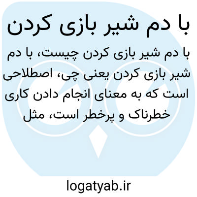 اصطلاحی است که به معنای انجام دادن کاری خطرناک و پرخطر است، مثل بازی کردن با دم یک شیر که احتمال آسیب دیدن بالاست. یعنی شخص خود را در معرض خطر جدی قرار می‌دهد.