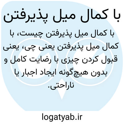 یعنی قبول کردن چیزی با رضایت کامل و بدون هیچ‌گونه ایجاد اجبار یا ناراحتی. معمولاً بیانگر تمایل و علاقه به پذیرش یک پیشنهاد یا مسئولیت است.
