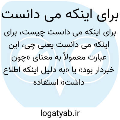 این عبارت معمولاً به معنای «چون خبردار بود» یا «به دلیل اینکه اطلاع داشت» استفاده می‌شود. مثلاً: «او دیر آمد برای اینکه می دانست جلسه لغو شده است.»