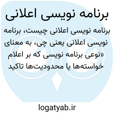 به معنای «نوعی برنامه نویسی که بر اعلام خواستهها یا محدودیتها تاکید دارد تا چگونگی تحقق آنها»؛ معمولاً در منطق برنامه نویسی و یا زبانهایی که declarative هستند به کار میرود.