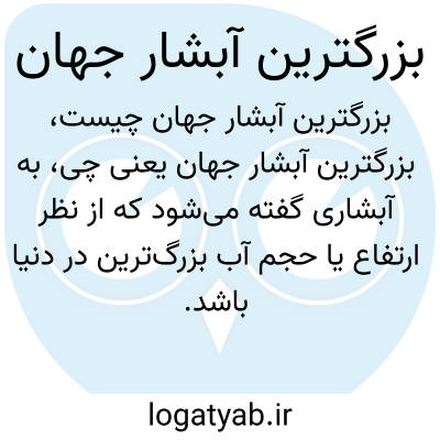به آبشاری گفته می‌شود که از نظر ارتفاع یا حجم آب بزرگ‌ترین در دنیا باشد. به عنوان مثال، آبشار آنجل در ونزوئلا از نظر ارتفاع بزرگ‌ترین آبشار جهان است.