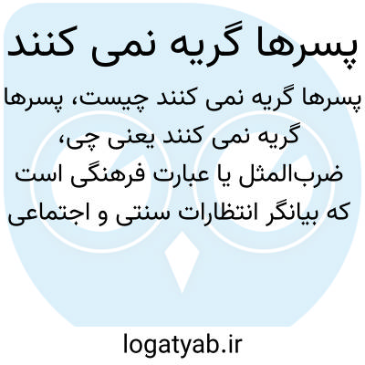 ضربالمثل یا عبارت فرهنگی است که بیانگر انتظارات سنتی و اجتماعی از جنس مذکر است؛ اینکه پسرها نباید احساسات خود را آشکار کنند و نباید گریه کنند، هرچند در جامعههای مدرن این دیدگاه در حال تغییر است.