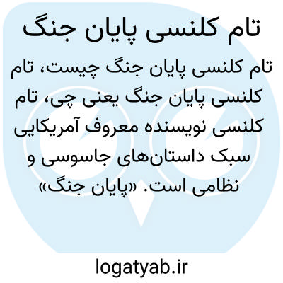 تام کلنسی نویسنده معروف آمریکایی سبک داستان‌های جاسوسی و نظامی است. «پایان جنگ» ممکن است به یکی از آثار یا مفاهیم مرتبط با پایانگیری یک درگیری نظامی اشاره داشته باشد که در آثار کلنسی معمولاً به تحلیل پیچیده سیاست‌ها و تاکتیک‌های جنگی پرداخته می‌شود.