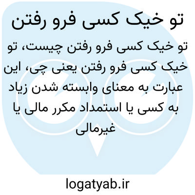 این عبارت به معنای وابسته شدن زیاد به کسی یا استمداد مکرر مالی یا غیرمالی از او است. "خیک" به کیسهای اشاره دارد که مردم برای حمل پول یا اشیاء به کار میبرند و "فرو رفتن در خیک" یعنی به طور مکرر از پول یا منابع کسی استفاده کردن.