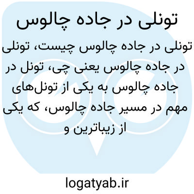تونل در جاده چالوس به یکی از تونلهای مهم در مسیر جاده چالوس، که یکی از زیباترین و پر ترددترین جادههای ایران است اشاره دارد. این تونلها کمک میکنند تا مسیر کوهستانی و پر پیچ و خم این جاده کوتاهتر و عبور و مرور ایمنتر شود. جاده چالوس نقش مهمی در ارتباط تهران با شمال کشور دارد.