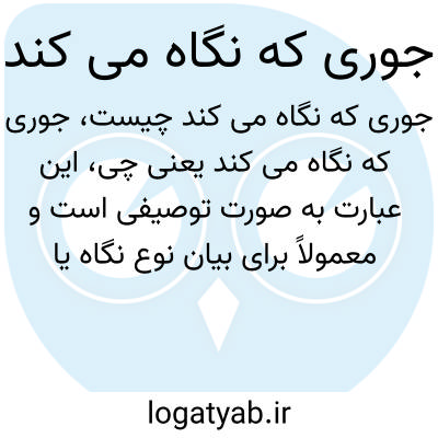 این عبارت به صورت توصیفی است و معمولاً برای بیان نوع نگاه یا نحوه نگریستن فردی به کار میرود، مثلاً "جوری که نگاه میکند نشاندهنده نگرانی است"؛ یعنی تاکید بر حالتی که نگاه فرد نشان میدهد.