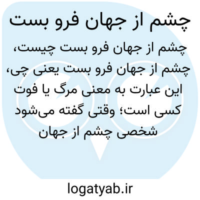 این عبارت به معنی مرگ یا فوت کسی است؛ وقتی گفته می‌شود شخصی چشم از جهان فرو بست، یعنی او از دنیا رفت و چشم‌هایش را برای همیشه بست.