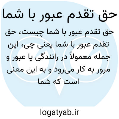 این جمله معمولاً در رانندگی یا عبور و مرور به کار میرود و به این معنی است که شما اولویت یا اول بودن در عبور از مسیر یا تقاطع را دارید و دیگران باید به شما حق تقدم بدهند.