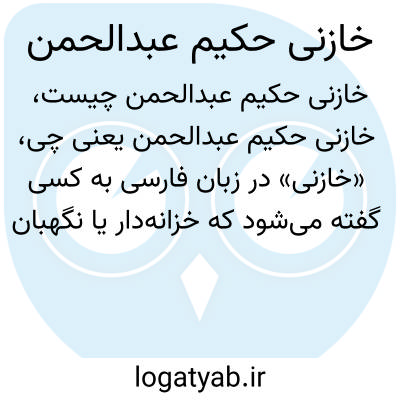 «خازنی» در زبان فارسی به کسی گفته می‌شود که خزانه‌دار یا نگهبان اموال است. «حکیم عبدالحمن» احتمالاً نام فردی تاریخی یا فرهنگی است که ممکن است به عنوان خازن یا خزانه‌دار شناخته شده باشد. این نام ترکیبی نشان‌دهنده فردی است که به دانش یا حکمت نیز معروف بوده است. در مجموع، این عبارت ممکن است به شخصیتی تاریخی اشاره داشته باشد که مسئولیتی مالی و در عین حال برخوردار از حکمت و دانش داشته است.