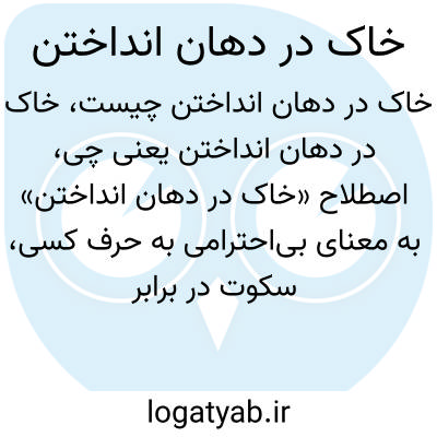 اصطلاح «خاک در دهان انداختن» به معنای بیاحترامی به حرف کسی، سکوت در برابر اتهام یا تحمل تحقیر است. این عبارت وقتی به کار میرود که میخواهند نشان دهند که فردی به گونهای از اتهام یا سخن ناصحیح سکوت نموده یا خود را در شرایطی قرار داده که مورد تحقیر قرار گرفته است.