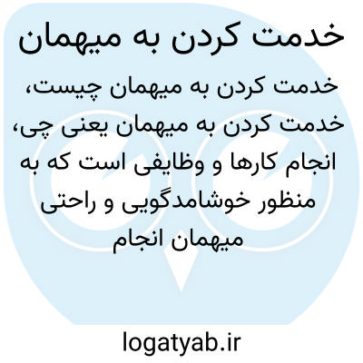 انجام کارها و وظایفی است که به منظور خوشامدگویی و راحتی میهمان انجام میشود. خدمت به میهمان در فرهنگهای مختلف از اهمیت بالایی برخوردار است و شامل پذیرایی، فراهم کردن امکانات و احترام گذاشتن به موقعیت میهمان میباشد.
