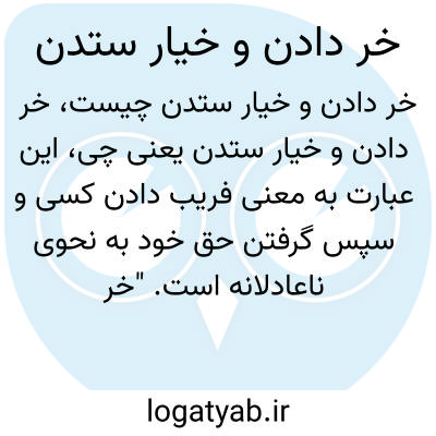 این عبارت به معنی فریب دادن کسی و سپس گرفتن حق خود به نحوی ناعادلانه است. "خر دادن" یعنی دادن چیزی بی‌ارزش یا بی‌فایده به دیگری و "خیار ستدن" به معنای پس گرفتن چیزی است، اغلب این عبارت مفهوم معامله ناعادلانه یا کلاه گذاشتن را دارد.