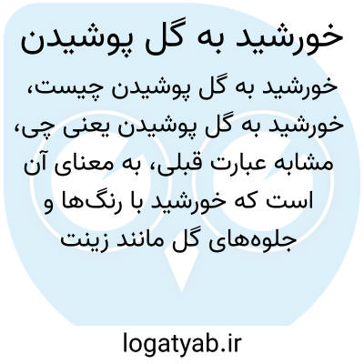 مشابه عبارت قبلی، به معنای آن است که خورشید با رنگ‌ها و جلوه‌های گل مانند زینت یافته یا پوشیده شده است. این عبارت معمولاً در اشعار و توصیفات شاعرانه برای توصیف طلوع یا غروب خورشید به کار می‌رود که آسمان را به رنگ‌های زیبا و گلگون درمی‌آورد.