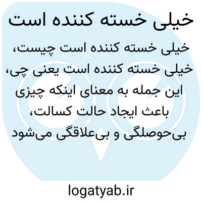 این جمله به معنای اینکه چیزی باعث ایجاد حالت کسالت، بیحوصلگی و بیعلاقگی میشود و فرد را خسته و بیانرژی میکند. وقتی میگویند "خیلی خسته کننده است"، درباره موضوع یا کار یا شرایطی صحبت میشود که جذابیت و هیجان ندارد و باعث احساس کسالت میشود.