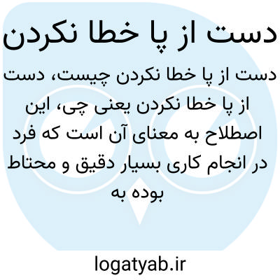این اصطلاح به معنای آن است که فرد در انجام کاری بسیار دقیق و محتاط بوده به طوری که هیچ اشتباهی نکرده است. معمولاً به کسی گفته میشود که با دقت و هوشیاری تمام امور را به انجام رسانده و هیچ لغزش یا خطایی نداشته است.