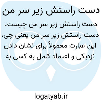 این عبارت معمولاً برای نشان دادن نزدیکی و اعتماد کامل به کسی به کار می‌رود؛ به این معنا که طرف مقابل به اندازه‌ای مورد اعتماد است که دست راستش (سمبل قدرت یا کمک) زیر سر من قرار دارد.