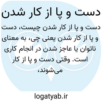 به معنای ناتوان یا عاجز شدن در انجام کاری است. وقتی دست و پا از کار میشوند، یعنی فرد قادر به ادامه یا انجام فعالیت مورد نظر نیست.