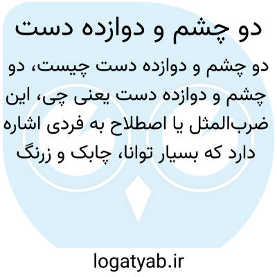 این ضرب‌المثل یا اصطلاح به فردی اشاره دارد که بسیار توانا، چابک و زرنگ است؛ یعنی با داشتن دو چشم و دوازده دست، می‌تواند هم‌زمان امور زیادی را انجام دهد و کارها را سریع و دقیق پیش ببرد.