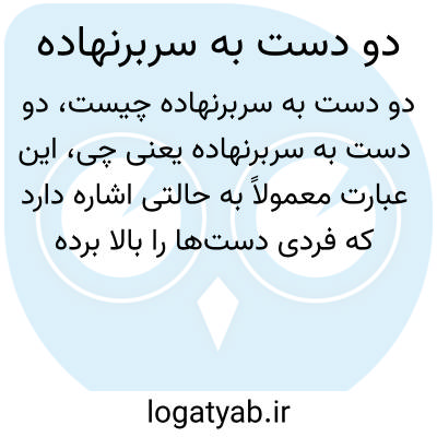 این عبارت معمولاً به حالتی اشاره دارد که فردی دستها را بالا برده و تسلیم شده است یا به نوعی به نشانه تسلیم و قبول شرایط، دستها را به بالا برده است.