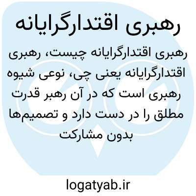 نوعی شیوه رهبری است که در آن رهبر قدرت مطلق را در دست دارد و تصمیمها بدون مشارکت یا مشورت زیاد با دیگران گرفته میشود. این نوع مدیریت غالباً با محدود کردن آزادیها و عدم تحمل مخالفان همراه است.