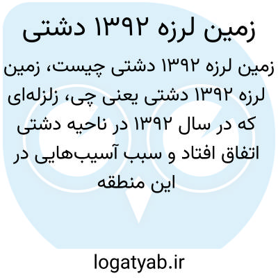 زلزله‌ای که در سال ۱۳۹۲ در ناحیه دشتی اتفاق افتاد و سبب آسیب‌هایی در این منطقه شده است. مطالعه این رویداد به تحلیل خطر زمین‌لرزه و آمادگی‌های لازم کمک می‌کند.