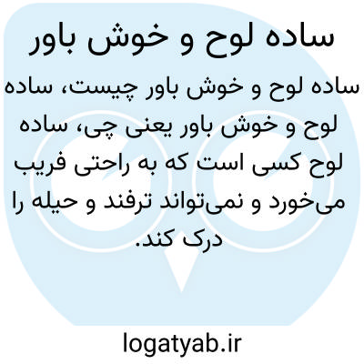 ساده لوح کسی است که به راحتی فریب میخورد و نمیتواند ترفند و حیله را درک کند. خوش باور بودن به معنای داشتن اعتماد زیاد و مثبت به دیگران است. شخص ساده لوح معمولاً خوش باور است اما تفاوت این دو در این است که خوش باور ممکن است با تجربه و آگاهی همچنان اعتماد کند، اما ساده لوح به دلیل کمبود آگاهی یا نداشتن تحلیل درست، زود فریب میخورد.