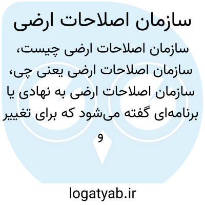 سازمان اصلاحات ارضی به نهادی یا برنامهای گفته میشود که برای تغییر و بازتقسیم مالکیت زمینهای کشاورزی بین کشاورزان و زارعین ایجاد شده است. هدف این سازمانها کاهش تمرکز زمینها در دست اشخاص خاص، افزایش بهرهوری و عدالت اجتماعی است. در ایران نیز در دهه ۱۳۴۰ اصلاحات ارضی به طور گسترده اجرا شد.