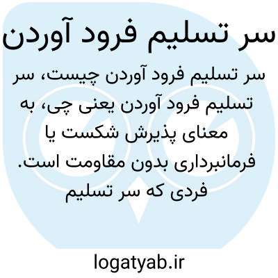 به معنای پذیرش شکست یا فرمانبرداری بدون مقاومت است. فردی که سر تسلیم فرود می‌آورد، خود را در برابر شرایط یا دیگری مطیع می‌داند و از جنگیدن یا ایستادگی دست می‌کشد.