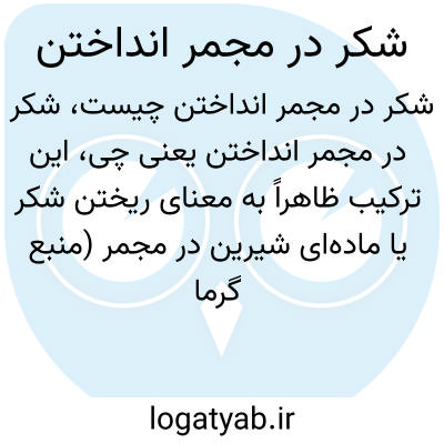 این ترکیب ظاهراً به معنای ریختن شکر یا ماده‌ای شیرین در مجمر (منبع گرما یا آتشدان) است که ممکن است به منظور ذوب یا حرارت دادن شکر برای فرآیندهای خاص یا تهیه مواد خوراکی باشد.