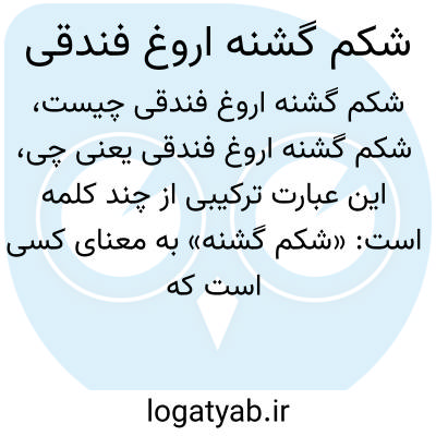این عبارت ترکیبی از چند کلمه است: «شکم گشنه» به معنای کسی است که گرسنه است و شکمش خالی است؛ «اروغ» به معنای باد شکم یا نفخ گازی است که از دهان خارج می‌شود؛ و «فندقی» در زبان عامیانه به نوعی باد یا نفخ گفته می‌شود. بنابراین این ترکیب به صورت کلی می‌تواند اشاره به باد شکمی یا نفخ گازی داشته باشد که معمولاً از سوی فرد گرسنه تولید می‌شود.