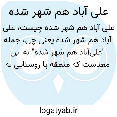 جمله "علی‌آباد هم شهر شده" به این معناست که منطقه یا روستایی به نام علی‌آباد که پیش‌تر به عنوان یک روستا شناخته می‌شد، اکنون به درجه شهر ارتقا یافته است. این نوع ارتقا معمولاً به دلیل رشد جمعیت و توسعه زیرساخت‌ها اتفاق می‌افتد.