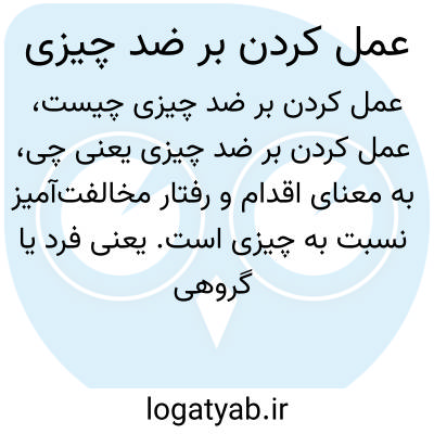 به معنای اقدام و رفتار مخالفتآمیز نسبت به چیزی است. یعنی فرد یا گروهی به طور فعال سعی در مقابله، جلوگیری یا نابودی یک موضوع، ایده یا پدیده دارند. این عبارت میتواند در زمینههای اجتماعی، سیاسی یا روانشناسی به کار رود.