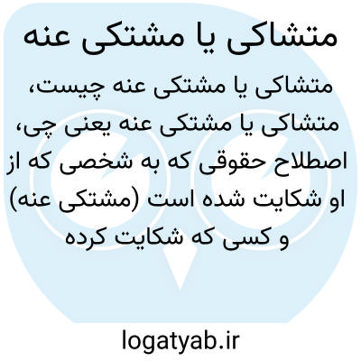 اصطلاح حقوقی که به شخصی که از او شکایت شده است (مشتکی عنه) و کسی که شکایت کرده (متشاکی) گفته می‌شود. این واژگان در پرونده‌های قضایی و حقوقی کاربرد دارند.