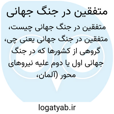 گروهی از کشورها که در جنگ جهانی اول یا دوم علیه نیروهای محور (آلمان، ایتالیا، ژاپن و ...) متحد شدند تا در جنگ پیروز گردند. متفقین شامل کشورهای مختلفی مانند آمریکا، بریتانیا، روسیه و فرانسه بودند و نقش مهمی در تاریخ جهانی ایفا کردند.