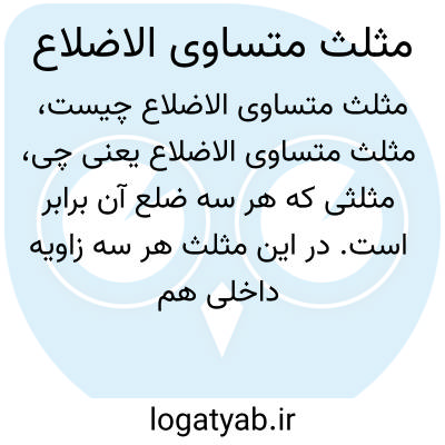 مثلثی که هر سه ضلع آن برابر است. در این مثلث هر سه زاویه داخلی هم برابر و برابر با ۶۰ درجه است. این شکل یکی از ساده‌ترین و پرکاربردترین اشکال هندسی در ریاضیات است.