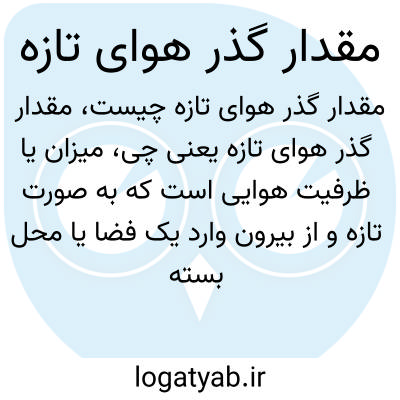 میزان یا ظرفیت هوایی است که به صورت تازه و از بیرون وارد یک فضا یا محل بسته میشود. این مقدار برای تهویه مناسب فضا اهمیت دارد تا هوای داخل سالم و بدون آلودگی بماند و از تجمع گازها یا بوهای نامطبوع جلوگیری شود.