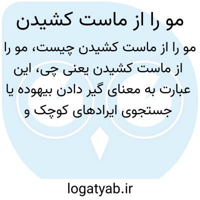 این عبارت به معنای گیر دادن بیهوده یا جستجوی ایرادهای کوچک و بیارزش است. به عبارتی وقتی کسی دنبال عیبهای خیلی جزئی و معمولی میگردد و از آن بزرگنمایی میکند، گفته میشود که «مو را از ماست میکشد». این اصطلاح در مکالمات روزمره برای اشاره به سختگیری زیاد به کار میرود.