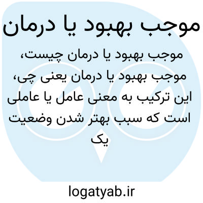 این ترکیب به معنی عامل یا عاملی است که سبب بهتر شدن وضعیت یک بیماری یا مشکل میشود. هر چیزی که به صورت مستقیم یا غیرمستقیم باعث روند بهبودی سلامت یا ترمیم شرایط نامطلوب گردد، موجب بهبود یا درمان آن وضعیت است.