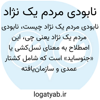 این اصطلاح به معنای نسلکشی یا «جنوساید» است که شامل کشتار عمدی و سازمانیافته یک گروه قومی یا نژادی خاص برای از بین بردن آنهاست. این عمل علیه حقوق بشر و قوانین بینالمللی محکوم است.