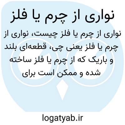 قطعه‌ای بلند و باریک که از چرم یا فلز ساخته شده و ممکن است برای بستن، تزئین یا نگهداری اجسام استفاده شود. این نوع نوارها در لباس‌ها، کیف‌ها یا وسایل مختلف کاربرد دارند.